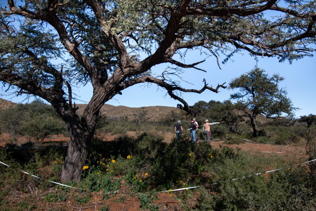 The morning sun beats down, dispelling the winter chill at Tswalu. Prof Susi Vetter, her face creased with determination, pushes through a thicket of thorns to gather data. Beside her, Dr Tiffany Pillay thoroughly records every observation, a testament to the comprehensive nature of their work. Curious giraffes watch their progress with gentle eyes. Over a thousand plants are tagged across the study area, a daunting task that requires both patience and precision. Much like a treasure hunt, MSc student Jordan McCullough sweeps the ground with his metal detector, searching for the faintest signal of a buried seedling tag from previous years. Meanwhile, PhD student Bridgette McMillan carefully excavates, ensuring no trace of these botanical time capsules is missed.