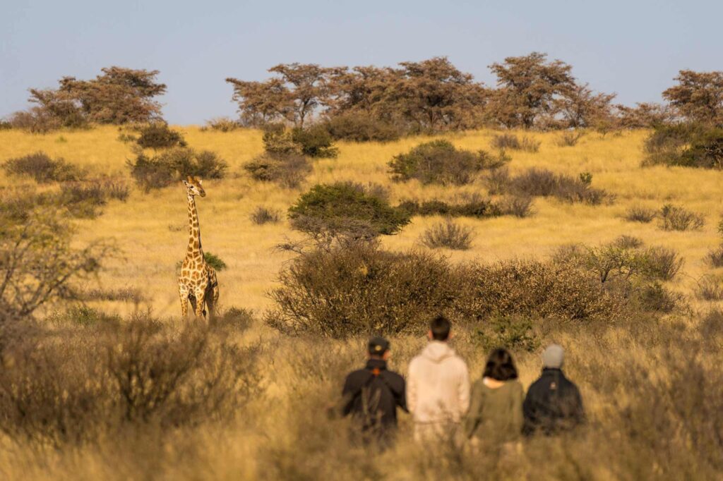 Immersive bush walks offer a slower, more intimate way to experience the Kalahari. Led by expert field guides, these walks focus on observation and inter- pretation — what guides describe as “reading the newspaper” of the reserve.