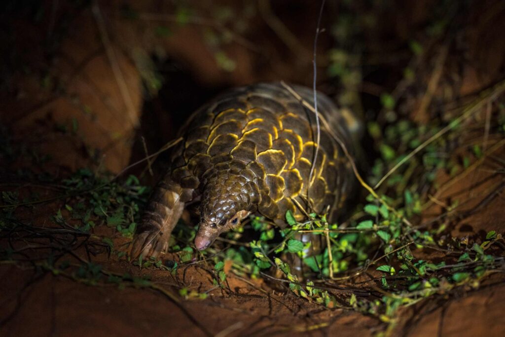 Rasekuwane will compare released pangolins against the resident wild population, monitoring and measuring differences in habitat use, movement, foraging behaviour, energetics, and reproductive output. Critically, the study will assess the acclimatisation period: how long it takes a released animal to behave like a wild one, and whether it ever fully does. That comparison requires locating and monitoring resident animals, and it is here that Tswalu’s guides and trackers become a critical resource and a part of the process. Where possible, teams are taking turns to monitor burrow activity and source tracks in the early hours of the morning and are heading out again at night to follow up in the hope of locating wild pangolins on the reserve.